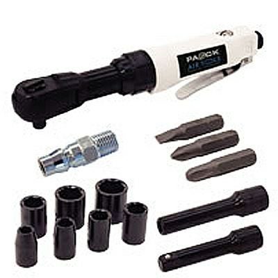 | 付属品 | ・9.5mm(3/8DR)ソケット:8、10、12、13、14、17、19mm ・9.5mm(3/8DR)エクステンションバー:75mm ・9.5mm(3/8DR)ユニバーサルジョイント ・6.35mm(1/4DR)ドライバビット:-5.5mm、+2、+3 ・9.5mm(3/8DR)ドライバビットホルダ ・カプラプラグR1/4 ・シールテープ ・オイルポット ・ブローケース |