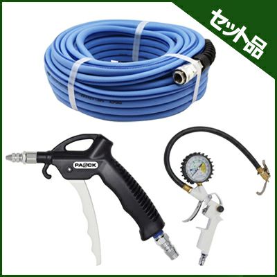 | セット内容 ソフトエアホース SPH-8520PA×1本 エアプレッシャーゲージ APG-1200PA 空気流量調整エアダスタ PAD-200A×1個 巻きぐせがつきにくい柔らかホースで取り回しラクラク! ホースの折れを防ぐホースガイド付。 |