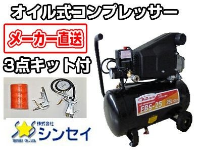 【3点キット付き】オイル式コンプレッサー EBS-25【25Lタンク】【100V・50Hz/60Hz兼用】