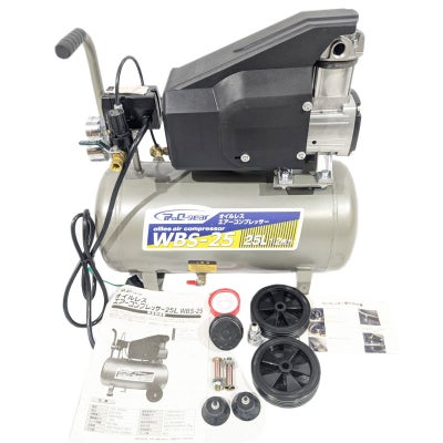 | オイルレスなので、面倒くさいオイルの補充作業や作業中のオイルの吹き出しがありません。また、家庭用100V電源使用なので、どこでも気軽に簡単に設置できます。各種作業に応じたエアー工具をお使いいただきますと1台で様々な作業が可能です。圧力の調整が簡単、使用時の空気圧を調整可能です。さらに大型タイヤ付きで、移動も楽々できます。