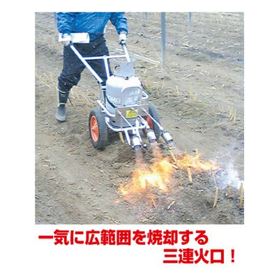 | 軽量 軽くて使いやすいアルミフレームの台車。持ち運びも簡単! 安全 プロパソガス燃料のバーナーは構造が簡単で故障しにくい! 安心 完全燃焼しやすいプロパンガスのため、作物に対して安全! 強力 カロリーよりも炎温度を高めることにより作業性アップ! 炎温度1500℃の高温、強力な集中炎で完全燃焼するプロパンバーナーの三連式火口を軽くて使いやすいアルミフレームの台車にセットしました。雑草の焼却、土壌の殺菌、アスパラガス栽培の残さ焼却など、農業用バーナーとして最適です。移動しながらの作業もでき、完全燃焼しやすいプロパンガスなので作物に対しても安全です。! |