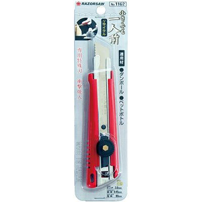 ・替刃式、カッター式鋸です。 ・ちょっとした場面で大活躍できます。 ・刃はレザーソー独自技術『超高周波衝撃焼入』を施してますので鋭い切味が持続。 ・ニッケルコーティング仕上ですので錆びにくいです。 ・ダンボール・ペットボトルなどゴミの分別に最適な特殊形状(波型刃)でスムーズに解体できる。 |
