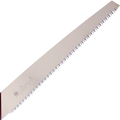 ・レザーソー木挽(こびき)は生木専用タイプです。 ・枝打全般(枝木・樹木)に使用できます。 ・元刃の方は刃のピッチが狭く、刃先へゆく程ピッチが広くなった目立てで、位置決め・切り始めのスムーズさとパワフルな切断力の2要素を兼ね備えた鋸です。 |