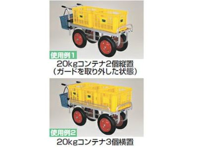 | ●荷台面が42cmと高いため腰をあまり曲げなくても収穫物をコンテナに入れられます。さらに特殊な形状のハンドルが作業を楽にします。 ●機械重量:15.4kg ●この画像はCH-1334です。 ●コンテナ・カゴは付いていません。 ●ノーパンクタイヤ仕様です。 ●ハンドルにフックが付いていますから手かごを掛けられ便利です。 |