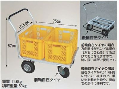 2輪自在タイプ! ハラックス CHJ-700 アルミ台車 アルミハウスカー ハウスカー 運搬車 【80キロ積載】 【コンテナ2個用】 【エアータイヤ】 愛菜号 【メーカー直送・代引不可】