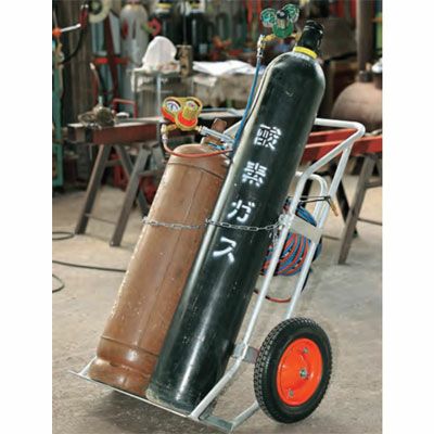 ・酸素ボンベ(7000L)とアセチレンボンベ(7kg)の2本のボンベを積載でき、ホースの収納巻取り用フックも付いており作業効率がアップします!