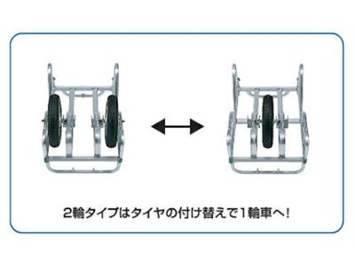 ●上下調節可能なハンドル ●取り外し可能なプラスチック製の舟 1台の台車で何役もこなす、多機能台車の登場です。 標準で付属するプラスチック製の舟を外せば、2個積みのコンテナカーに早変わり。 苗箱運搬棚(NC-10/12)(別売)を搭載すれば苗箱などの運搬にも活用できます。 また、2輪タイプはタイヤを付け替えることで1輪にして使用することもできます。 |
