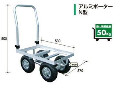 ハウス内での作業から普段の生活にもお使い頂ける手頃な台車です。 四輪車は安定かつ軽量、耐久性に優れております。 またハウス内での作業に最適。畝の幅に合わせてタイヤ調節可能。 荷台ガイドの長さ・幅も調整可能、ハンドルも外せます。 空気入アルミホイールタイヤ(ベアリング入)を使用しています。 |