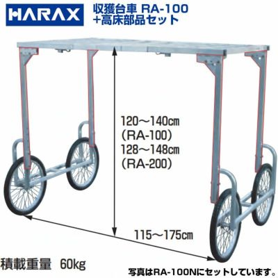 【個人宅配送OK】ハラックス 楽太郎 RA-100 RA100 アルミ製 収穫台車 高床部品セット【送料無料】【代引OK】【150kg積載 キャベツ ダイコン 白菜 葉物野菜 野菜 収穫 作業台車 高床 タイヤ幅 荷台高さ調整可能】【日本製】【エアータイヤ】