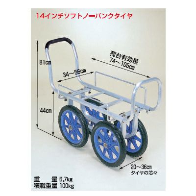 タイヤの直径が約35cmと大きいため、悪路での走行に最適です。 【個人宅配送OK】【2台セット】ハラックス アルミハウスカー CH-1400 アルミ台車 アルミ四輪車 ハウスカー 運搬車【代引OK】 【100キロ積載】 【ノーパンクタイヤ】 愛菜号