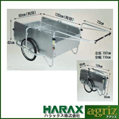 【個人宅配送OK】 ハラックス リヤカー コンパック HC-1208A-4P HC1208A4P アルミ製 大型 折りたたみ 20インチ エアータイヤ 頑丈【積載量 180kg 農業 土農具 肥料 家庭菜園 野菜 収穫物 防災用品 アウトドア】【全面アルミパネル付】【代引不可】