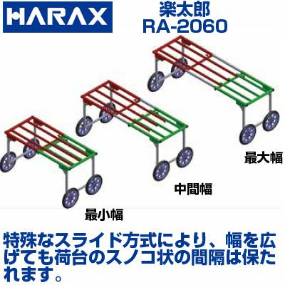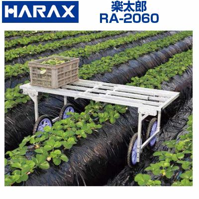 アルミ製 作業台車 ●タイヤ幅に連動し荷台も調節できますから畝幅に合わせてセットできます。 ●組み替えによって荷台幅をタイヤ幅よりも広くセットできますから収穫物をより多く乗せることができます。 ●荷台フレームが進行方向に対して横向きに配置されてますから、いちご収穫用トレーを縦向きに置いて安定します。 ●荷台幅は無段階調節可能で、隙間を埋めるアタッチメント等の脱着も必要ありませんから、幅調節が楽におこなえます。(特殊なスライド方式により幅を広げてもスノコ状の間隔は保たれます。) |