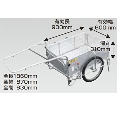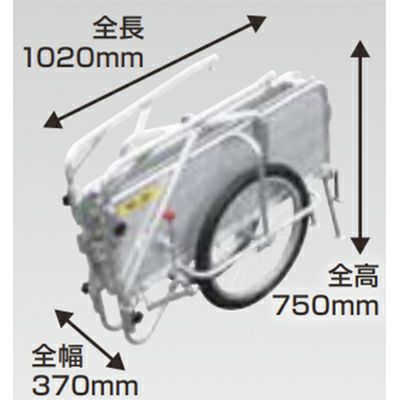 | オールアルミ製 折りたたみ式リヤカー。 SMCシリーズに、ご要望の多いワンタッチ式駐車ブレーキと安全スタンドを装備しました。 |