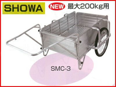 | 昭和 SMC-3 オールアルミ製折りたたみ式リヤカー 【代引不可】 多目的(マルチ)に使える台車(キャリー)! まさにその名の通り様々な用途に活躍するオールアルミ製折りたたみ式キャリーです。 ≪特長≫ ・四方を板で囲い、小さな品物でも運搬中に落とすことがありません。 ・前後の板は取り外しができるので長物を運搬したいときに便利です。 ・使用しないときはコンパクトに折りたたんで収納できます。 ・ノーパンクタイヤを標準装備。空気抜けの心配なくいつでも使用できます。 ・タイヤホイールはスポーク式なのでクッション性に優れ荷物のガタツキを防ぎます。 ・組立はノブボルトを使用しているので工具を用意する必要はありません。 ※出荷時の段ボール荷姿・・・1370L×430W×845H(mm)1台入り (寸法は突起物を含みません) |