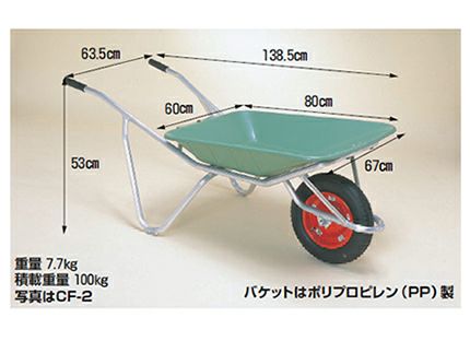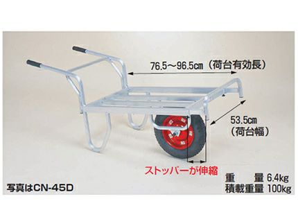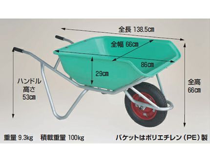 タイヤの直径が約35cmと大きいので、凸凹路面でも気にせず進めます!また、荷台面が約45cmと高いので、腰をあまり曲げることなく収穫物をコンテナに入れられます。