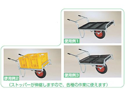 運搬用品とは、ハウス内の狭い場所や畑の畝間を通って収穫した作物を運搬するためのもので、多くはアルミ製で出来ており手押し式となります。