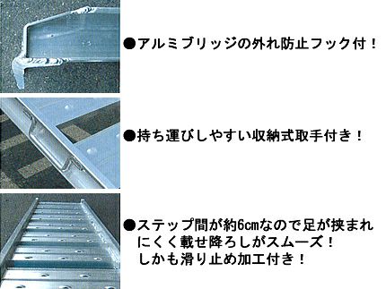 2tトラックへアルミブリッジで農機具を積み下ろししたい方に!乗用草刈機などの荷下ろしに必須の少し長いアルミブリッジ!道板 歩み板 ラダー レール ステップ 重機 建機 農機 【法人様専用・代引不可・受注生産品・返品不可・キャンセル不可】300kg アルミブリッジ 1本 昭和 アルミブリッジ バイク用 ラダー【240cm 18cm 0.3t】レール MC-240 (ツメ式)【有効長2400×有効幅180(mm)】【国産・日本製】【2.4m】