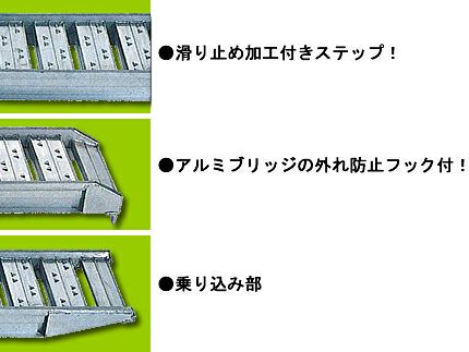 道板 歩み板 ラダー レール アルミラダー ステップ 重機 建機 農機 【法人様専用・代引不可】2t アルミブリッジ 2本 日軽 油圧ショベル(ユンボ)等 PX20-270-30 【ツメ式】【全長2700×有効幅300(mm)】【270cm 30cm 2t】【最大積載2.0t】 【2トン】【2t】【国産・日本製】【2.7m】