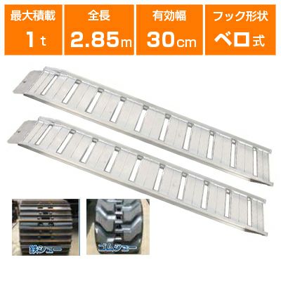 アルミブリッジ 1t 2.85m 2本セット 昭和ブリッジ GP-285-30-1.0SK ベロ式 重機 建機 農機 ユンボ ショベルカー パワーショベル 油圧ショベル バックホー バックホウ 全長2850×有効幅300mm(285 30cm) 最大積載1トン 1.0t 1.0トン ラダーレール アルミステップ アルミラダー
