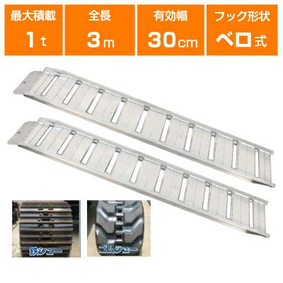 アルミブリッジ 1t 3m 2本セット 昭和ブリッジ GP-300-30-1.0SK ベロ式 重機 建機 農機 ユンボ ショベルカー パワーショベル 油圧ショベル バックホー バックホウ 全長3000×有効幅300mm(300 30cm) 最大積載1トン 1.0t 1.0トン ラダーレール アルミステップ アルミラダー