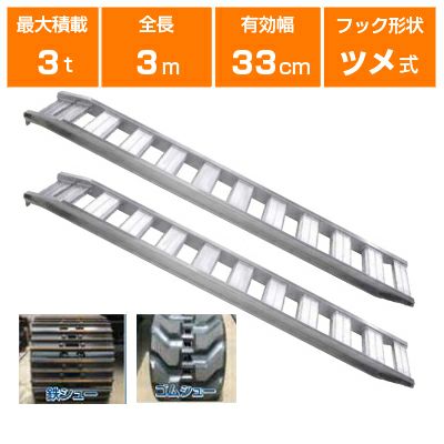 アルミブリッジ 3t 3m 2本セット 昭和ブリッジ GP-300-33-3.0T ツメ式 重機 建機 農機 ユンボ ショベルカー パワーショベル 油圧ショベル バックホー バックホウ 全長3000×有効幅330mm(300 33cm) 最大積載3トン 3.0t 3.0トン ラダーレール アルミステップ アルミラダー