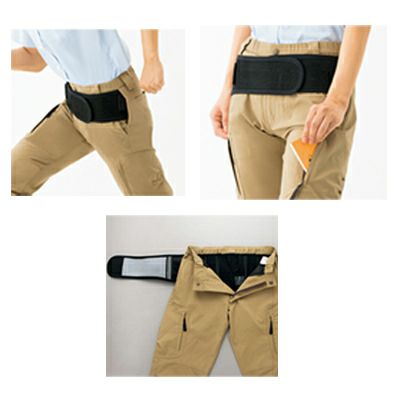 腰部サポートベルト対応ストレッチカーゴパンツ。