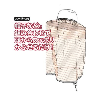 | ●蚊などの虫から顔や首元を守る!! 麦わら帽子、キャップなど庇のある帽子ならOK! ※麦わら帽子はイメージですので、附属しておりません。 |