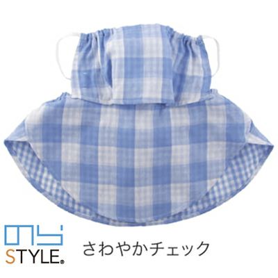 Wガーゼで肌にやさしい! のらスタイル ネックカバー付き農家さんマスク さわやかチェック