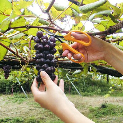 | ●ぶどうの摘果・収穫に最適。 ●握りやすいグリップと、シャ―プな刃先は、ぶどうや果実の採果作業に抜群の操作性を発揮します。 |