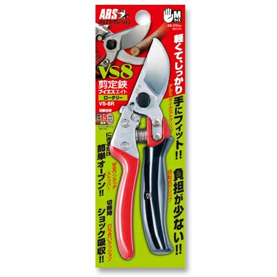| ●切れ味・耐久力共にプロ仕様の高級剪定鋏です。●直径15mm以下。 ●刃の開きが大きく、手にしっかりなじむので、らくらくスムーズな選定作業。手首の負担を軽減する回転式グリップ使用。 |