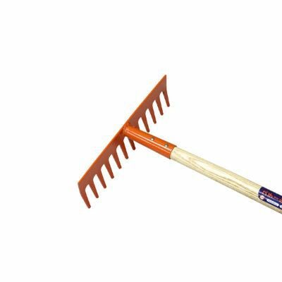 | ●頭部はスチール製で丈夫な12本爪の木柄レーキです。●整地作業、除草後の集草作業、うね上げ後のならし作業時に。 |