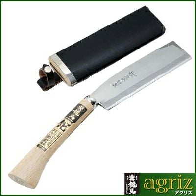 切れ味抜群の鋼付刃で枝打ち・薪割りが楽々できます。 梅鉢龍馬 鞘入腰鉈 双刃 195MM