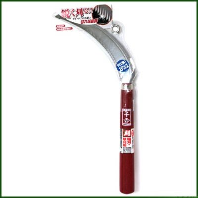 | ●用途 刈鋸鎌 ●機能 稲刈り、除草作業、その他の雑作業用です。切断しにくいナイロンヒモ、肥料袋、マルチなども楽々切断できます。錆びにくく、汚れもつきにくいステンレス刃で切れ味抜群です。柄は、目立って紛失しにくい赤塗装、安全に作業ができる滑り止め処理塗装を施しています。 |