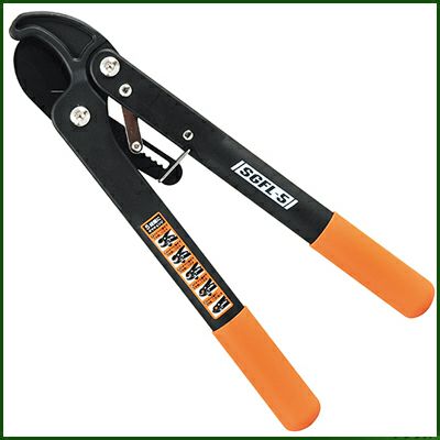 | ●用途 庭木の剪定作業用 ●機能 ラチェット機能式で、従来の約1/3の力で楽々切断ができます。錆び、ヤニ、汚れに強いフッ素コート加工刃です。軽量、しかも丈夫なナイロングラスファイバー製ハンドルを採用しています。気軽に使える小型軽量タイプの太枝切鋏です。 |
