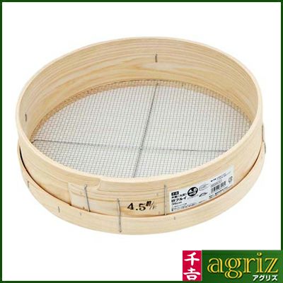 穀物や土・砂のフルイ作業に最適です。 千吉 木製砂フルイ(丸型)35cm 4.5MM