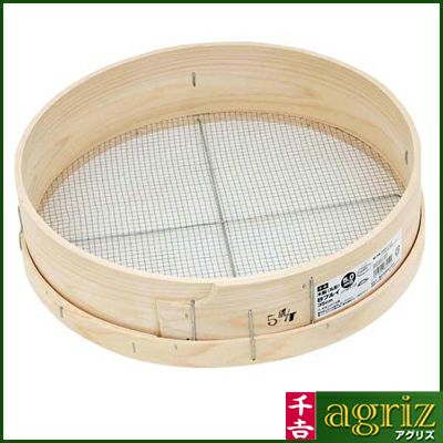 穀物や土・砂のフルイ作業に最適です。 千吉 木製砂フルイ(丸型)35cm 5.0MM