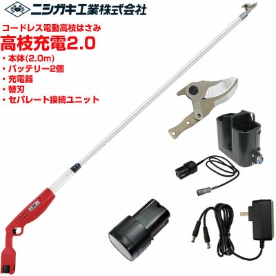 ・プロも納得のパワーと切味を発揮する充電式高枝はさみです。 ・傾斜を付けた細身のグリップで高所でも切りたい枝を狙いやすく、手首への負担も少ない設計です。 ・最大26mmの枝を0.5秒(1サイクルは約1秒)で切る事ができます! ・切刃は耐摩耗性に優れた高級刃物鋼にヤニ・サビに強いニッケルメッキ仕上げ。 ・コードレスなので取り回しがラクで、現場について直ぐに使えて片付けもラク!