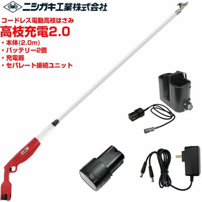 ・プロも納得のパワーと切味を発揮する充電式高枝はさみです。 ・傾斜を付けた細身のグリップで高所でも切りたい枝を狙いやすく、手首への負担も少ない設計です。 ・最大26mmの枝を0.5秒(1サイクルは約1秒)で切る事ができます! ・切刃は耐摩耗性に優れた高級刃物鋼にヤニ・サビに強いニッケルメッキ仕上げ。 ・コードレスなので取り回しがラクで、現場について直ぐに使えて片付けもラク!