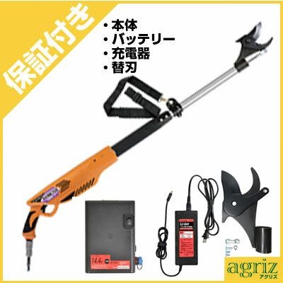 DC14.4V Li-ionバッテリー搭載。満充電で、27mmまでの枝を約6000本切断できます。