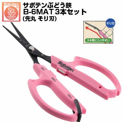 (送料無料でお得な3本セット) ぶどう鋏 サボテン 先丸 そり刃 NO.B-6MAT 磁力で自動で開く鋏 (サボテン ぶどう はさみ 摘粒 房作 収穫 目盛付 軽量 ぶどう農家)