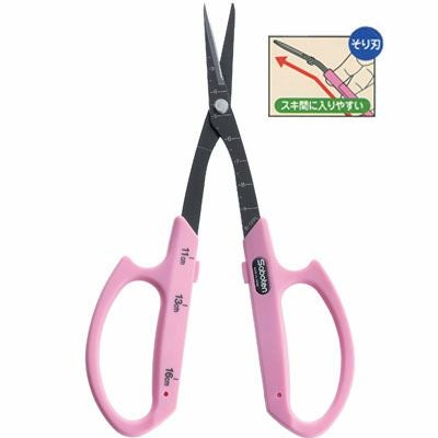 ジベレリン処理後の硬くなった支梗も楽々カット! ぶどう鋏 サボテン 首長ぶどう鋏 そり刃 NO.B-1MFPL【サボテン はさみ ぶどう 首長ぶどうはさみ 摘粒 房作り 収穫 目盛付き ピンク色 ステンレス フッ素コート 先細 ロング刃 そり刃 負担軽減 ぶどう農家】