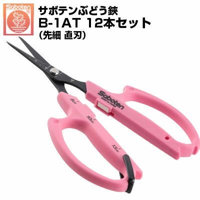 (送料無料のお得な12本セット) ぶどう鋏 サボテン 直刃 NO.B-1AT 磁力で自動で開く鋏 (ぶどうはさみ 摘粒 房作 収穫 目盛付 軽量 ステンレス フッ素加工)