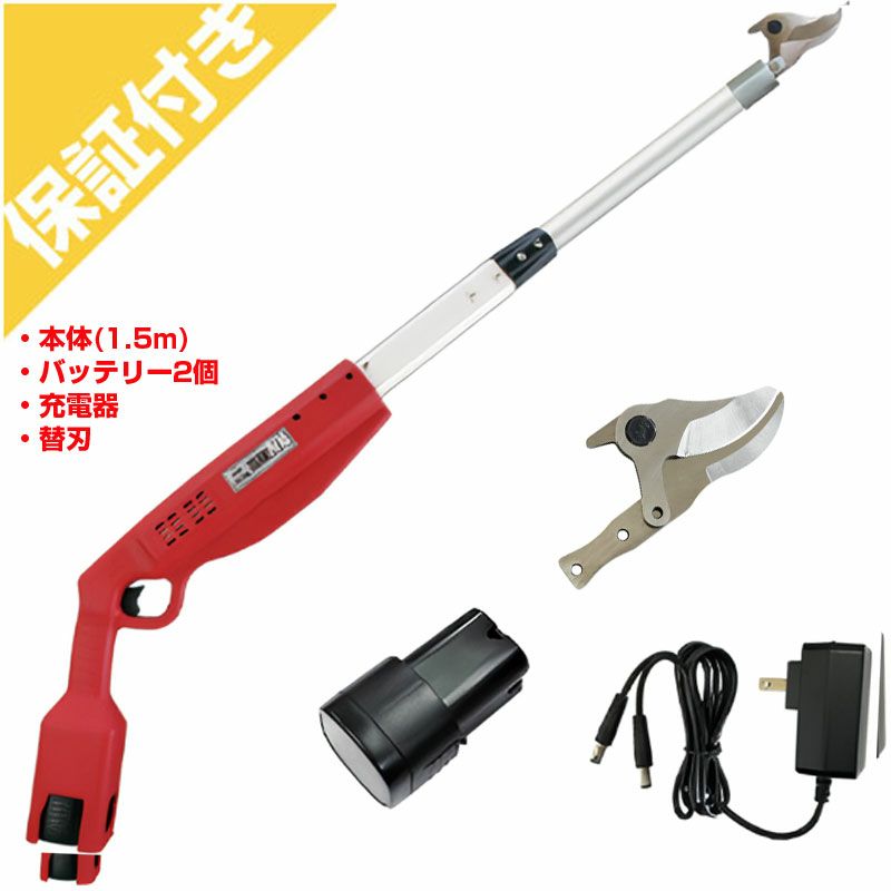 最大26mmの枝を0.5秒(1サイクルは約1秒)で切る事ができます! プロ仕様 ニシガキ工業 高枝充電1.5 電動高枝鋏 コードレス ハイパワー【最大切断径26mm 全長1510mm】【果樹 ぶどう うめ 梨 剪定】【切味抜群 日本製刃 ニッケルメッキ仕上げ ブラシレスモーター搭載 バッテリー2個付 充電式 高枝剪定ばさみ N-781 N781】【送料無料】