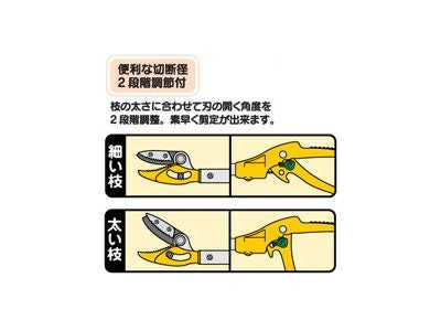 軽くトリガーを引くだけで刃が動いて35mmまでの太枝がスパッと切れます!長時間の作業でも手がラクで腱鞘炎からも解放されます!