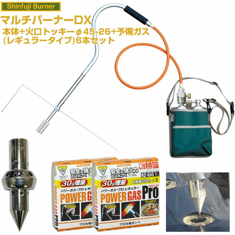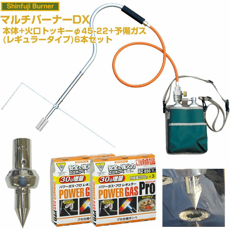 マルチシートに直径50mmの穴を開ける火口セット! (送料無料) 新富士バーナー マルチバーナーDX 本体+マルチ火口φ50+レギュラーガス6本セット 【農業用マルチシート 穴あけ ラク 効率化 省力化 農家用 園芸用 家庭菜園 プロ対応 ジャガイモ タマネギ レタス 落花生 ダイコン コーン 白菜 キャベツ】
