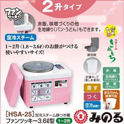 他の画像を見る 600万台の販売実績をもつ家庭用もちつき機のパイオニア! みのる産業 もちつき機 餅つき機 ファンツッキー HSA-25 【1~2升】【むす・つく】【空冷ファンで杵つきの味を再現】【赤飯、うどん・パンの生地づくり】 メーカー希望小売価格(税込) ¥ 50,380 販売価格: ¥ 41,762 税込 カートに入れる お気に入りに登録する