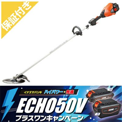 | プラスワンキャンペーン 今だけ!予備バッテリー付きモデルがお買い得。 期間限定2026年9月30日まで。 やまびこエコー「イナズマバリキ50V」シリーズから刈払機がモデルチェンジして登場。 バッテリー式だから「低振動」「低騒音」「排ガスゼロ」環境にやさしくストレスの少ないスマートな作業を実現します。 プロユーザにも好評の本格充電式刈払機BSR510シリーズ。重心バランスを考え抜いたデザインが、疲れにくく、安定した作業をサポートします。 起動も簡単、スイッチオン、エンジン式のような始動時の作業が不要です。 また、煩わしい燃料管理が必要ありませんので、バッテリーを充電しておけば、パッと使える手軽さも魅力です。 モーターは排気量30ccクラスに匹敵するパワーを発揮するブラシレスアウターロータタイプを新規に採用。スマートCPUによる制御で、粘り強いトルクと加速性能を発揮し、タフな雑草にも対応します。 従来のエンジン式と同様にモーターを後部に配置、朝露に濡れた草や水際での作業も問題なくこなせます。 バッテーリーおよびモーターの重心をドライブシャフト軸上に置くことで、重量バランスに優れ、安定した作業を行うことができます。 操作レバーは、新型コントロールレバー「Selectionコントロールレバー」を採用。ロックアウトレバー(安全解除レバー)とスロットルレバーを握ることで、刈刃が低速で回転、速度調整ボタンを押すたびに、低、中、高の3段階にローテーションで変速します。 また、任意の回転に合わせたいときはホールドボタンで回転速度を記憶、レバーを握ると記憶した回転速度で作業ができます。 (※トリガーレバーは握り込み方次第で回転を変更できますので、選んだ段階の最高回転範囲内で調整できます。) フロントは握りやすく操作の楽なループハンドル、リヤは防振構造の中空グリップ。平坦地から斜面まで幅広くお使いいただけます。 255mmのJIS規格の高級チップソーも標準装備、効率よく草刈作業が行なえます。 |