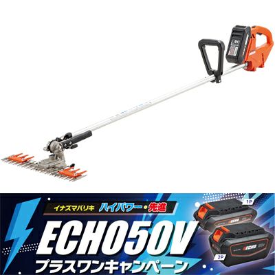 | プラスワンキャンペーン 今だけ!予備バッテリー付きモデルがお買い得。 期間限定2026年9月30日まで。 やまびこエコー「イナズマバリキ50V」シリーズからT字型バリカン登場。 バッテリー式だから「低振動」「低騒音」「排ガスゼロ」環境にやさしくストレスの少ないスマートな作業を実現します。 デッキブラシのように使える!?石の飛散が少なく駐車場や街路、公園などの草刈りに便利な新感覚のバッテリー式バリカン草刈機。 デッキブラシをかけるようにバリカンを動かすことで前後の往復刈りが可能、バリカン下部には車輪とソリを搭載、平面地では車輪でスムーズに、凹凸はソリで乗り越え、地面を滑るように作業ができるので機械の重さをさほど気にせず作業ができます。 刈払機のように刈幅を大きくとることはできませんが、アスファルトや壁の際、フェンス下など作業が難しい場所の草刈りに最適です。 オートブースト機能搭載で、草の量に応じて刈込速度を調整、しつこい草にも対応しています。 ギヤケースはワンタッチでスピーディに角度を7段階に変更可能。作業者の体形や地形に合わせて無理のない姿勢で作業ができます。 バリカン刃の後方にはプロテクターを採用し、作業者に刃が当たる事を防ぎ足元のけがのリスクを低減します。 刈刃は丸ごと脱着が可能で、メンテナンス性にも優れています。 障害物の多い場所や壁際、駐車場、公園、ガードレール下やフェンス下など様々な場所で威力を発揮します。 |