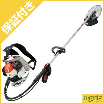 | 共立の背負式草刈機。本格的な農業仕様のスタンダードタイプ。 従来機にくらべ軽く安定したエンジンを搭載し、23ccクラスながら26ccクラスにも引けを取らないパワフルさを得た本格的な農業仕様のスタンダードモデル! 軽さとパワーのバランスを高次元で両立した共立の背負式刈払機です。 四流掃気シリンダ採用の2サイクルエンジンはクランクケースにマグネシウム合金を採用することで耐久性の向上と軽量化が行なわれています。 エンジン始動は、引き力の軽い「蓄力式iスタート」と「背引き対応リコイルグリップ」の組み合わせによりやわらかく引け、背負ったままでも楽に始動ができます。 幅広背負いバンドが肩への食い込みを低減し、背当ては腰にピッタリフィットする設計でしっかり背負えるのでずれにくく作業時のストレスを低減。また、マフラー出口がフロントに向いているので排熱やガスが溜まりにくく、夏場でも快適に作業ができます。 新採用のエアクリーナーは防塵性能に優れたパフ剤のフラットタイプを採用。交換も容易に行えます。 エンジンと操作竿が柔らかいフレキシブルワイヤーで連結されているのでエンジンの振動が伝わりにくく、低振動です。 フロントは握りやすく操作の楽なループハンドル、リヤは防振構造の中空グリップ。平坦地から斜面まで幅広くお使いいただけます。 スロットルタイプはツインスロットルタイプを採用。コントロールレバーで任意のエンジン回転域に固定でき、トリガーレバーを握ると固定した回転域で作業ができます。トリガーレバーを離すとアイドルに戻りますので安全性も向上しています。エンジンのストップスイッチも手元に設置されているので緊急時も素早くエンジンを停止可能です。 255mmのJIS規格の高級チップソーまで標準装備。効率よく草刈作業が行なえます。 |