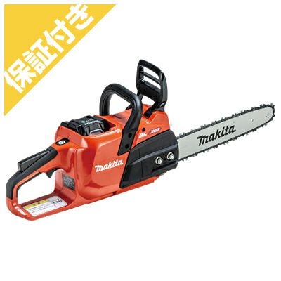 エンジン式35mLクラスと同等性能を発揮、チェーンスピード25.5m/秒の高速切断で玉切りから伐倒、枝払いまで幅広い作業がスピーディに行えます。 ハイパワーブラシレスモータ搭載で、高出力・高耐久・メンテナンスフリー。 エンジン式同等の粘り強い使用感で過度な押付け力による回転数低下を感覚的に把握しやすく、刃物を押し付ける力の調整がしやすい。 「リトリガ」不要で素早く再起動(ロック時)※ 過負荷によりロックしても、負荷を取り除けば、トリガを引き直さずに再起動。トリガを引いたまま作業を再開できます。(ロックの状態によっては再起動しない事があります。) エンジン式同等以上の優れた加速性でトリガオンから素早く全速回転。オン/オフを繰り返す、細かい枝払い作業が軽快に行えます。 優れたトリガレスポンスで連続作業も快適です。 質量5.2kg(BL4040F装着時)と軽量なため取り回し性も良く、細かな連続作業も軽快にこなします。 また、正確な切断をサポートする最適ハンドル設計と視認性に優れた伐倒ライン(ガンマーク)により伐倒も安定した切断が行えます。 雨の中でも運転可能な、防滴・防じん「ウェットガード」& 防水保護等級「IPX4」を採用、高い防水性能を誇ります。 (※雨の中での使用等に耐えうる製品仕様となっていますが、故障しないことを保証するものではありません(当社基準)。水や粉じんによって故障しないことを保証するものではありません。バッテリを装着した場合は、本体側の保護等級に準じます。) ソーチェンはチェンピッチ0.325in、ゲージ厚1.1mmの薄刃仕様(80TXL)。切断抵抗を大幅低減し、鋭い喰いつきで快速切断。竹の切断も可能です。 ガイドバーは先端部のスプロケット(歯車)でチェーンの回転抵抗を減らし、パワーを最大限に伝達可能なラミネートタイプのスプロケットノーズバーを採用。バー長は14インチ(350mm)となります。 細かいチェンの張り調整が可能なナット式チェンカバー、ガイドバーを確実に固定するダブルナット仕様です。 ナットは脱落防止ナットを採用、ナットの不意な紛失を防止します。 材料に鋭く食い込み、固定しやすい金属製スパイクも標準装備 「収納式」大口径オイルタンクキャップでつまみが邪魔にならず、手袋をつけた手でも開け閉めが行いやすい。 高耐久金属製チェーンキャッチャで、万が一のチェン外れから作業者を守ります。 ※バッテリー・および充電器は別売りとなります。 |